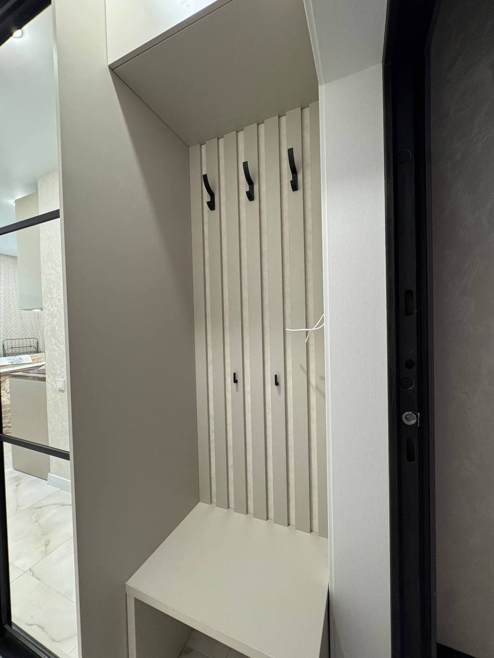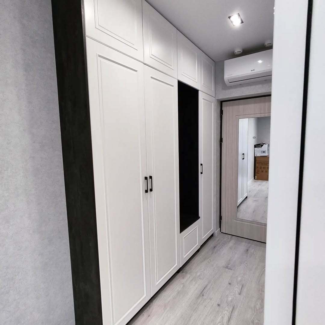 та же квартира. решение для хранения в небольшой студии, где шкаф был единственным местом для организации пространства. Мы разработали распашной шкаф в стиле современной городской классики, который гармонично вписался в интерьер и максимально эффективно использует пространство.