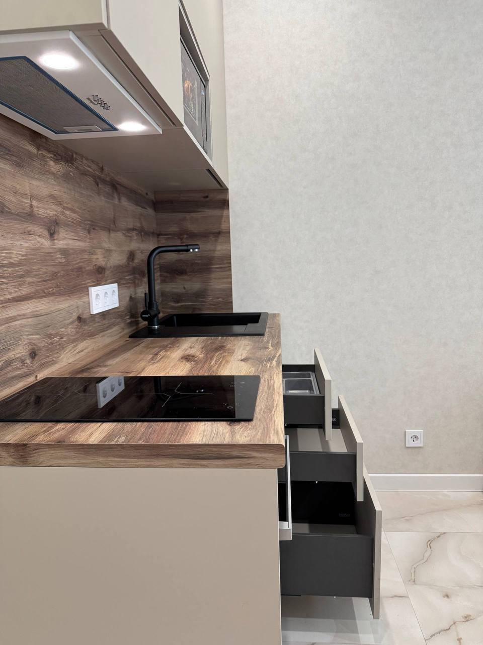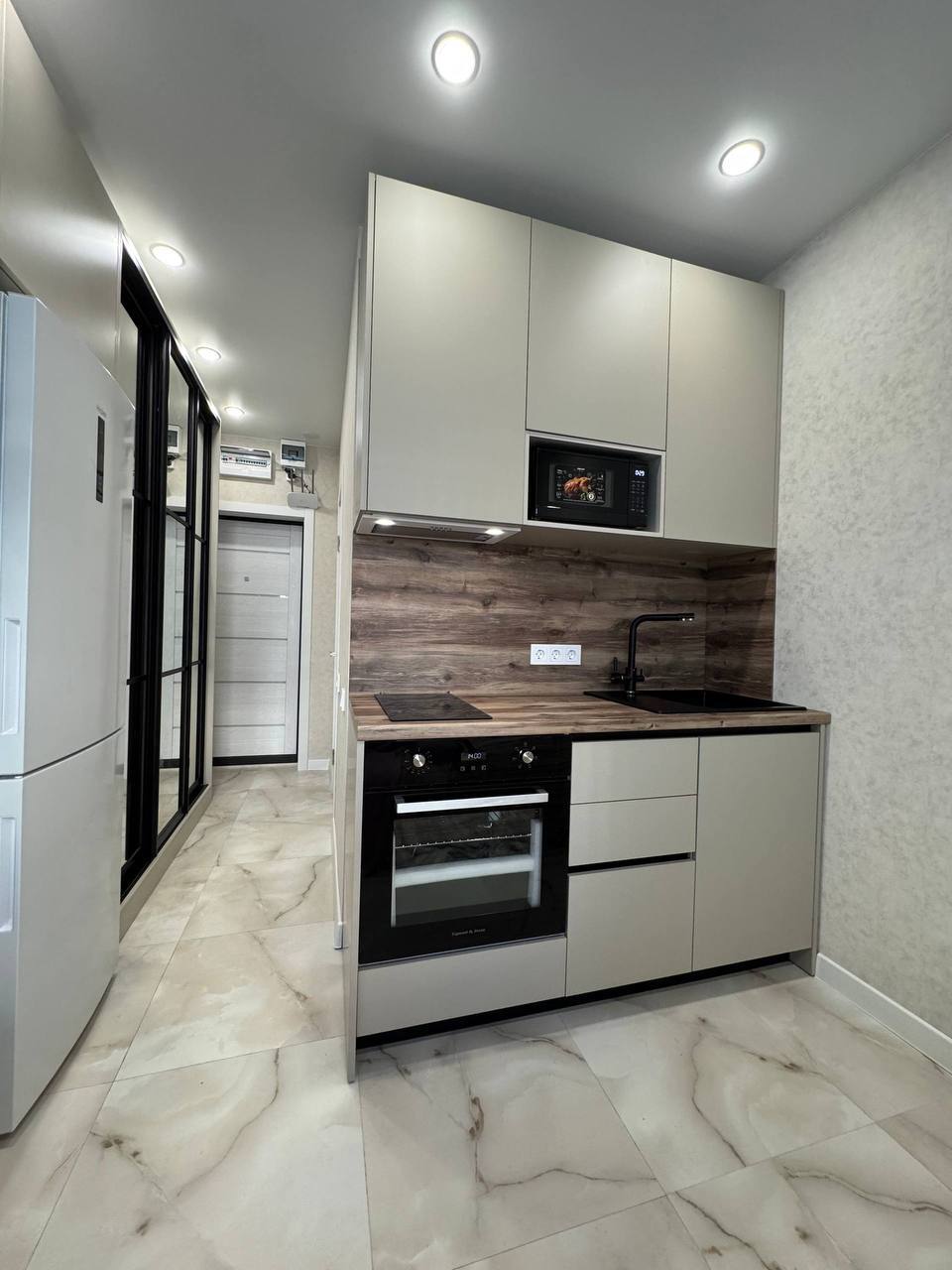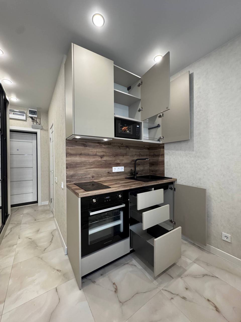 Небольшая квартира-студия в одном из самых популярных жк города сочи. клиент обратился к нам, находясь в другом городе, по рекомендации. Задача стояла сделать всё в одном стиле, красиво и недорого. В проекте используется фасад AGT и чёрный профиль GOLA, а так же чёрный профиль для шкафов-купе futurum.