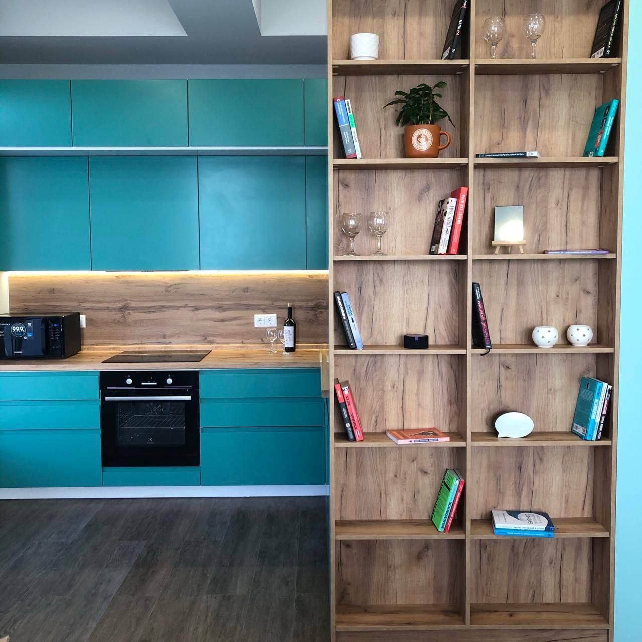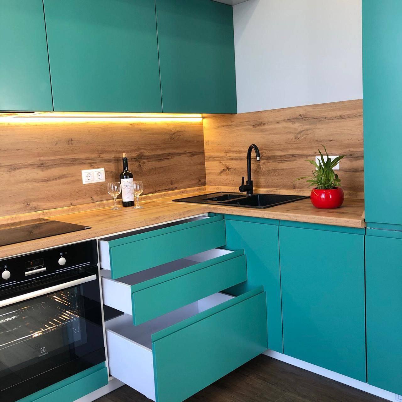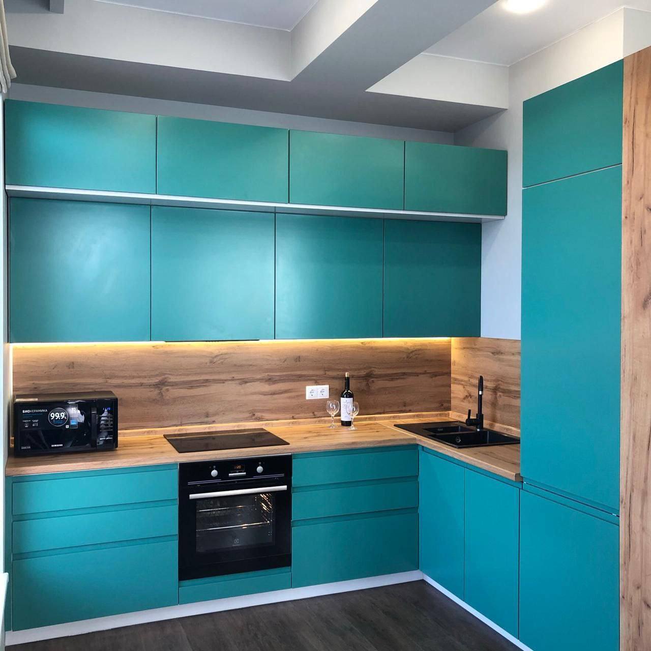 семья из москвы пожелала создать уникальную кухню в цвете тиффани с интегрированными ручками, чтобы добавить яркий акцент в интерьер. Мы воплотили ее мечту, разработав стильное и функциональное решение, которое стало центром пространства. А древесная столешница добавила теплоты.