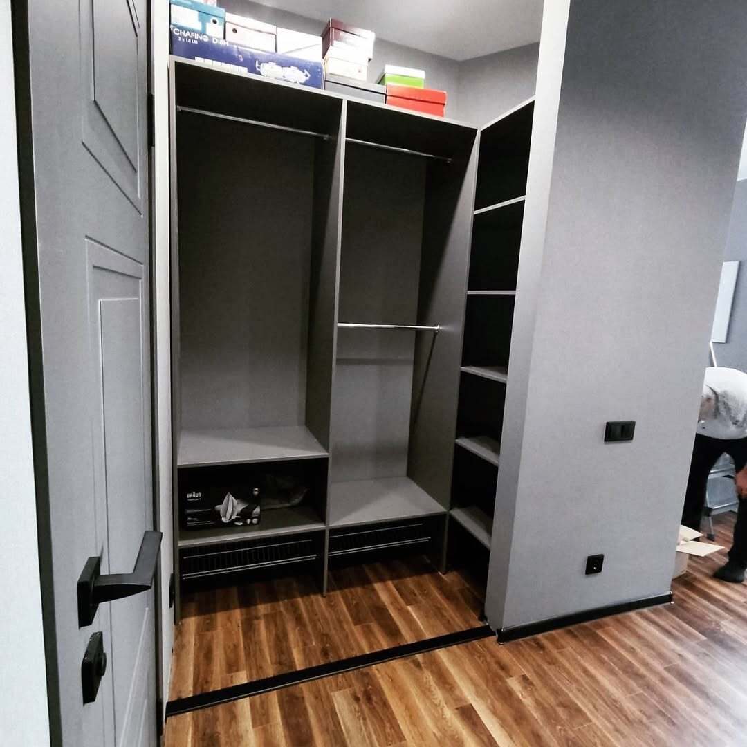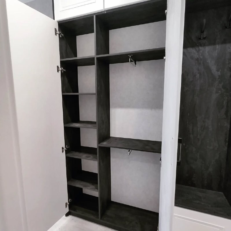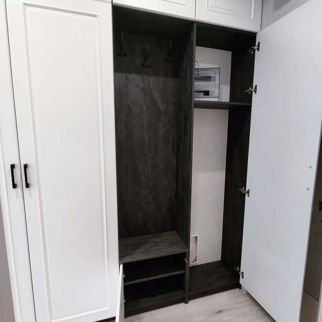 Клиент из Ставрополя нуждался в функциональной гардеробной комнате с дверьми-купе, учитывая ограниченное пространство. Мы разработали решение, которое максимально эффективно использует каждый сантиметр, обеспечивая не только стильный внешний вид, но и удобное хранение вещей.